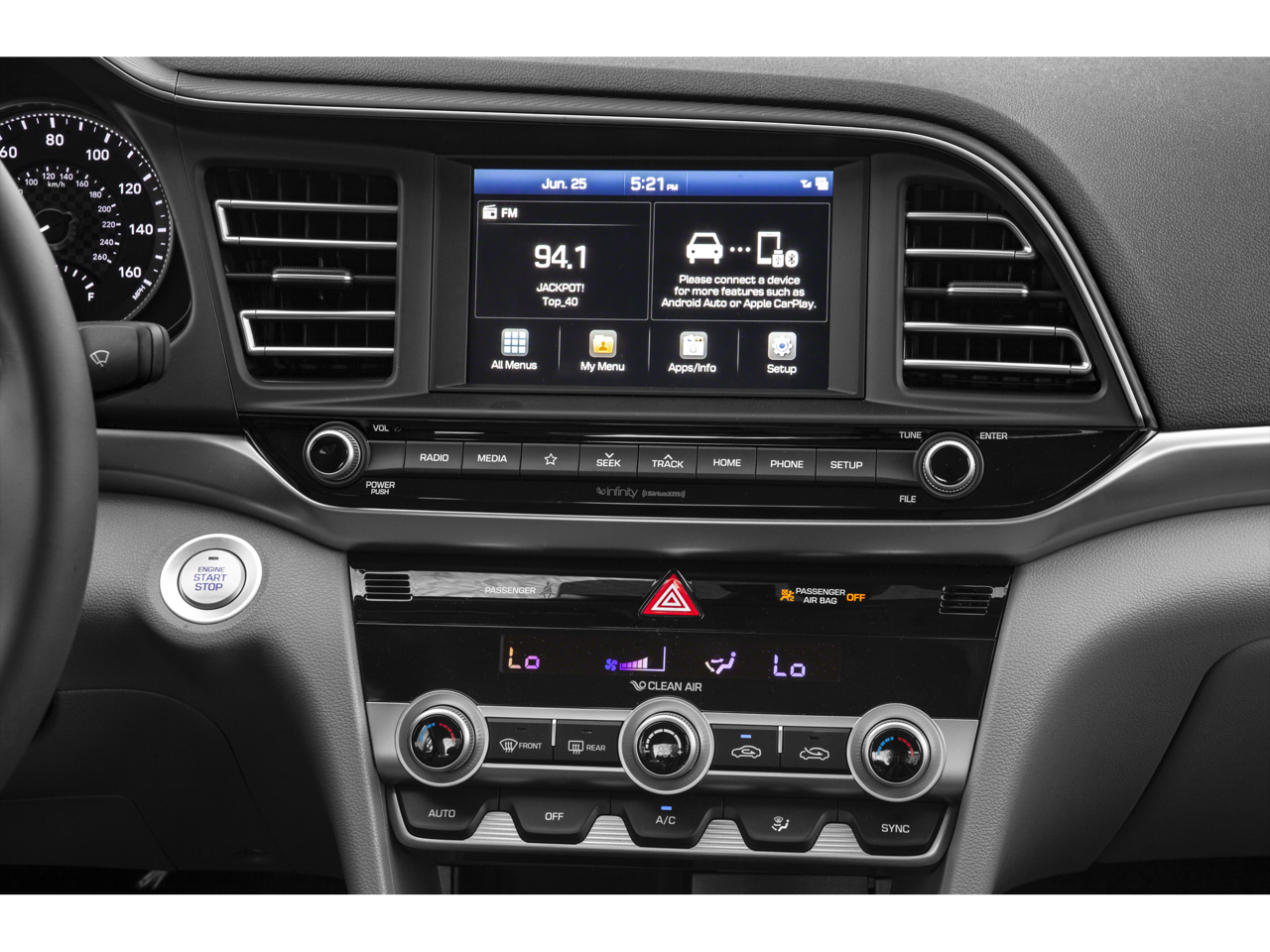 - Radio: AM/FM/HD/SiriusXM Infinity Premium Audio -inc: 7-inch display, iPod, USB and MP3 inputs, dual charging USB, Apple CarPlay & Android Auto, Blue Link (gen 2), wireless charging pad, 8 speakers including center channel and subwoofer, Bluetooth® hands-free phone system w/voice recognition and audio streaming, speed-sensitive automatic volume control, and Clari-fi music restoration technology
